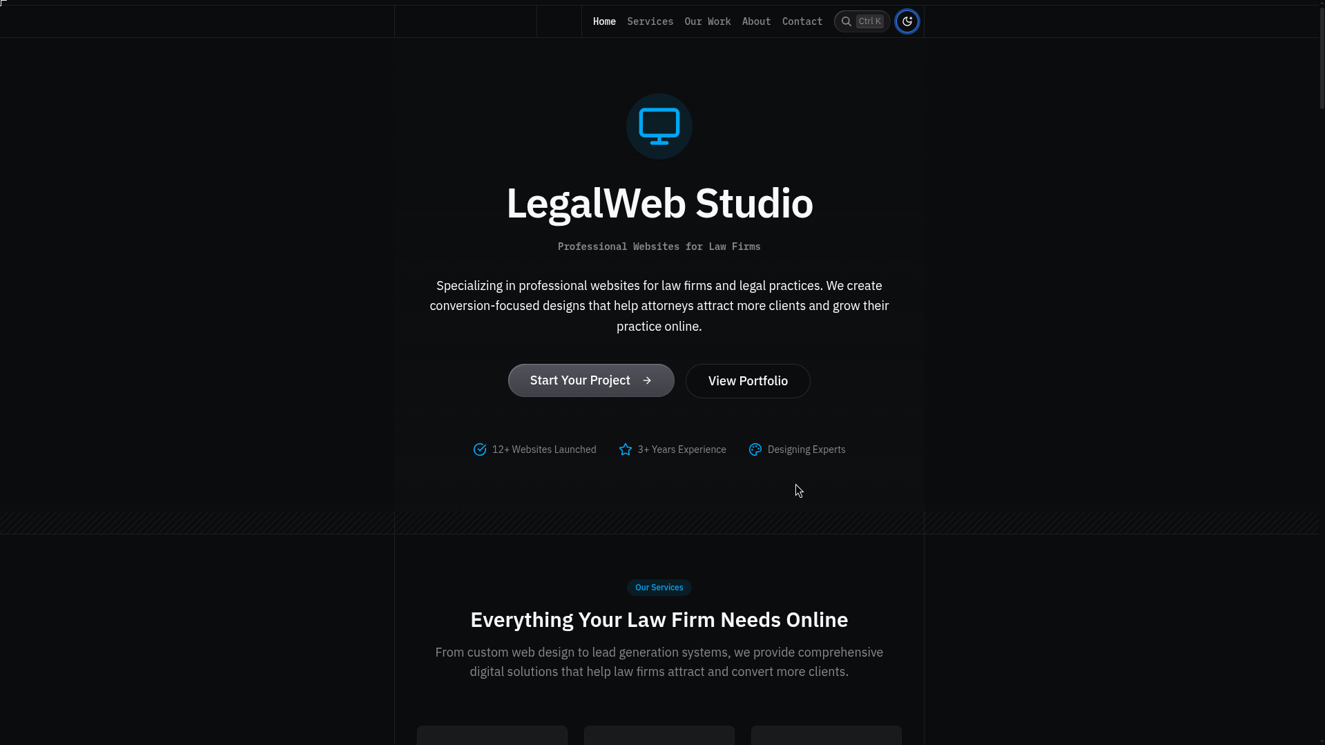 Designed and built the legalWeb studio's Website